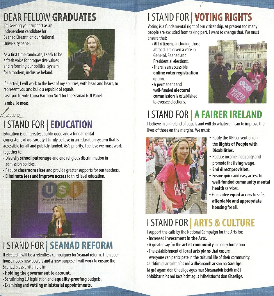 Leaflet from Laura Harmon – NUI Seanad #Seanad16 » LHarman3