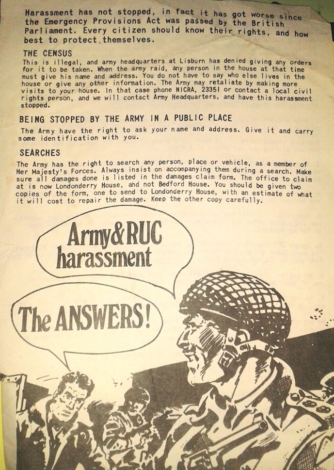 “Army and RUC Harassment ..The Answers” Northern Ireland Civil Rights Association leaflet » NICR1