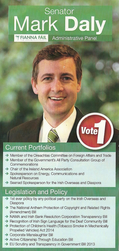 Leaflet from Mark Daly -Fianna Fail – Administrative Panel #Seanad16 » MDaly1