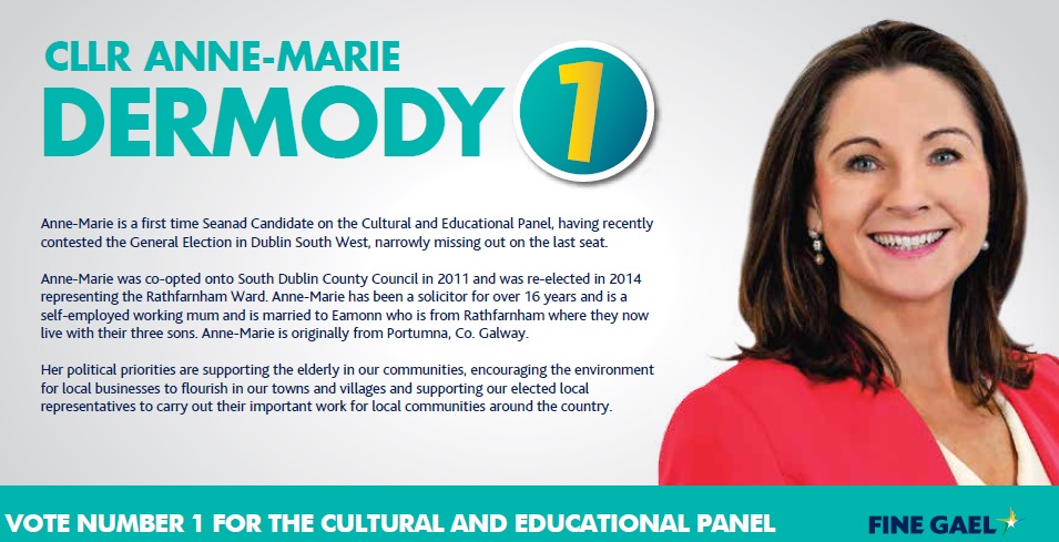Leaflet from Anne-Marie Dermody -Fine Gael – Cultural & Educational Panel #Seanad16 » AMDSeanad2