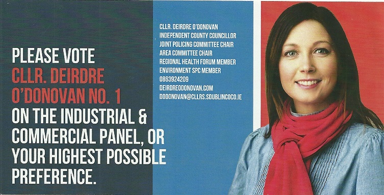 Leaflet and fancy envelope from Deirdre O’Donovan – Industrial & Commercial Panel #Seanad16 » dod1