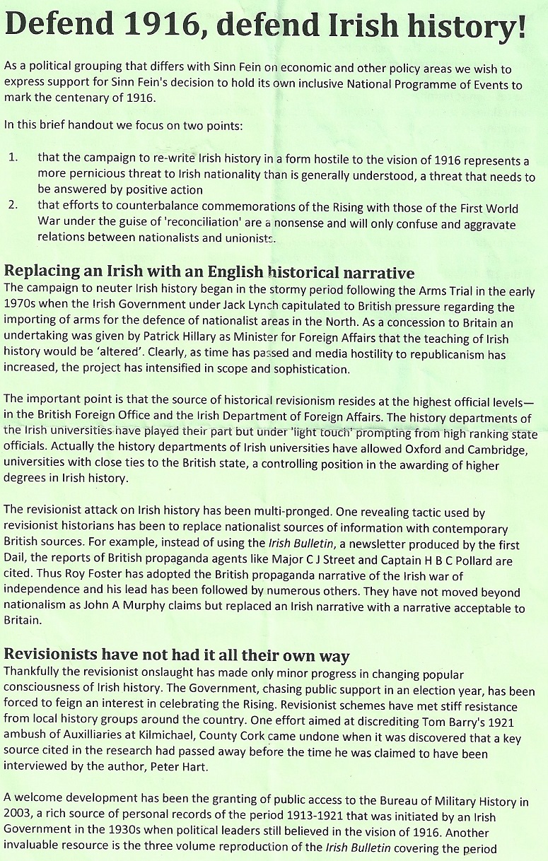 “Defend 1916, defend Irish history!’ leaflet from The Irish Political Review Group » 1defend19161