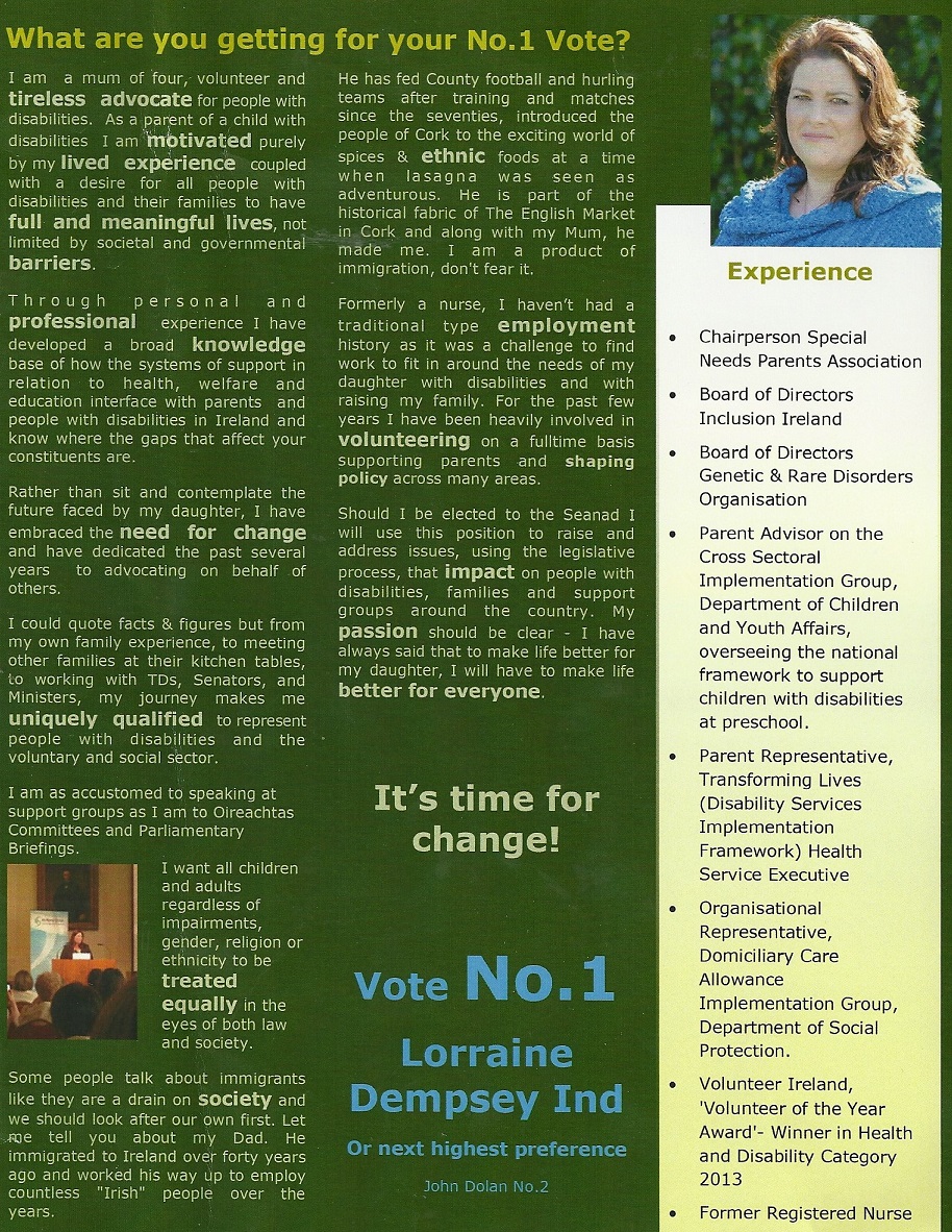 Leaflet from Lorraine Dempsey -Independent -Administrative Panel #Seanad16 » Ldempsey2