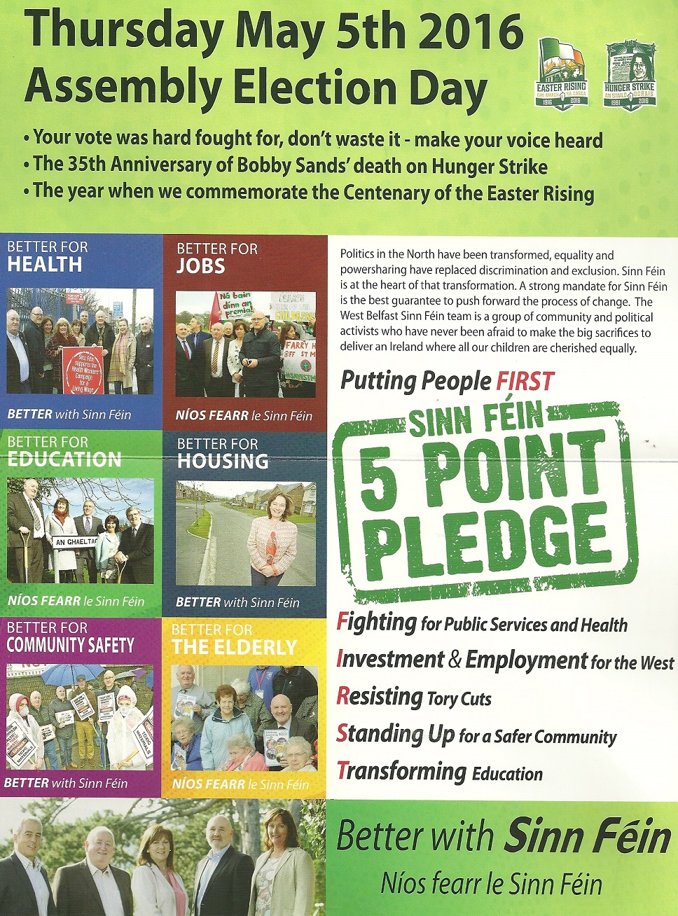 Sinn Fein “5 Point Pledge” Leaflet #AE16 » WBelSF2