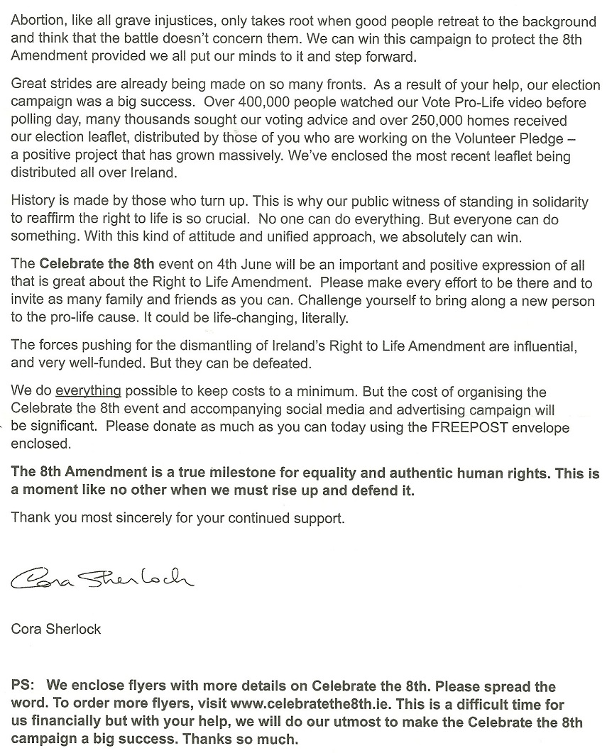 “Celebrate The 8th” Leaflet and letter from The Pro-Life Campaign » celebrate8th4