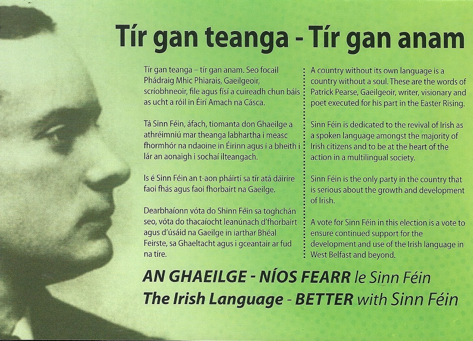 “Tír gan teanga – Tír gan anam” Bileog ó Sinn Féin – Iarthar Bhéal Feirste #AE16 » SFGae1