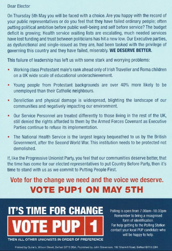 Leaflet from Russell Watson -PUP – East Derry #AE16 » Rwatson2