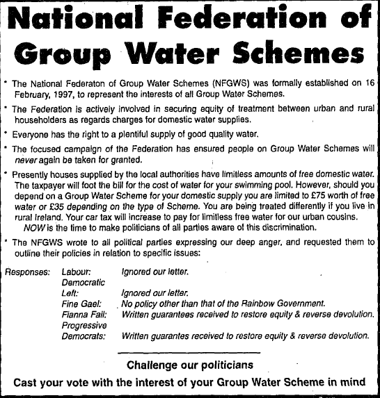 From the National Federation of Group Water Schemes in 1997 General Election Campaign. » groupwater97
