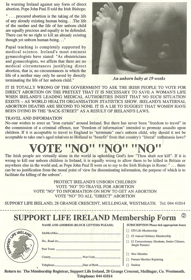 “Pope’s Warning To Ireland” Vote No leaflet from the 1992 Abortion Referendum » pope92b