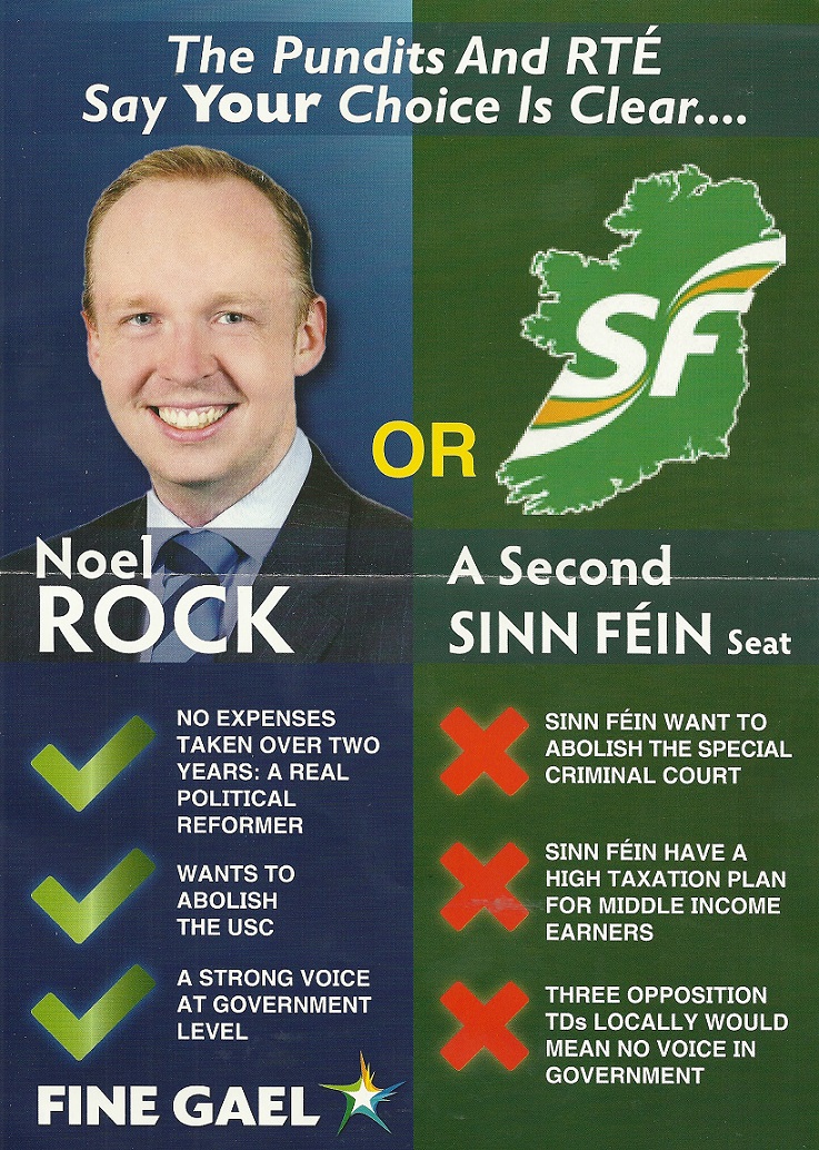 “Noel Rock Or A Second Sinn Fein TD” leaflet from Noel Rock -Fine Gael -Dublin North West -2016 General Election » NrockSF1
