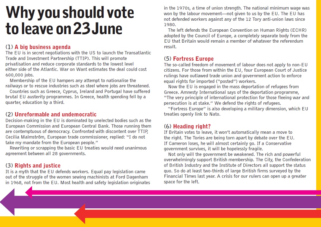 From the UK Brexit Referendum a leaflet from Lexit – The Left Leave Campaign.