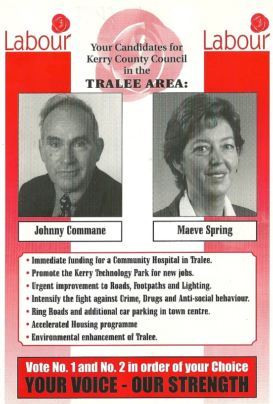 Leaflet from Johnny Commane, Maeve Spring- Labour -Tralee – 1999 Local Elections » trallecclab99a
