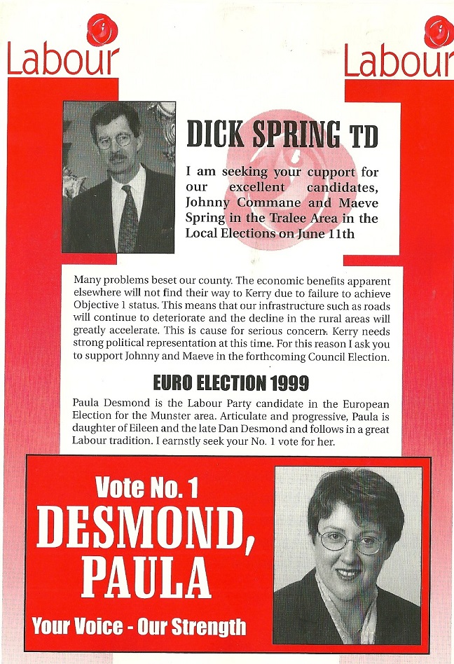 Leaflet from Johnny Commane, Maeve Spring- Labour -Tralee – 1999 Local Elections » trallecclab99b