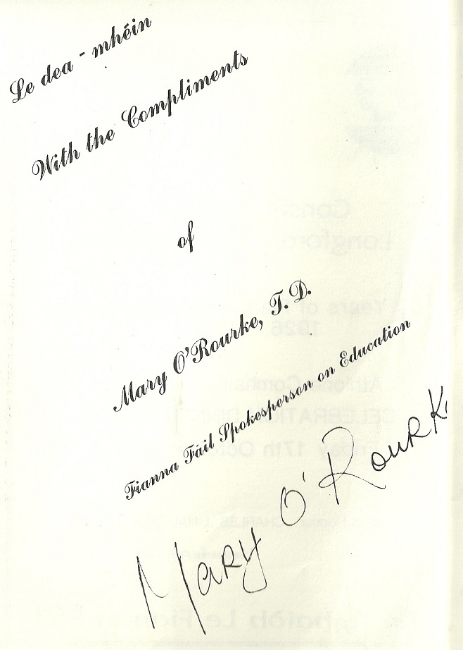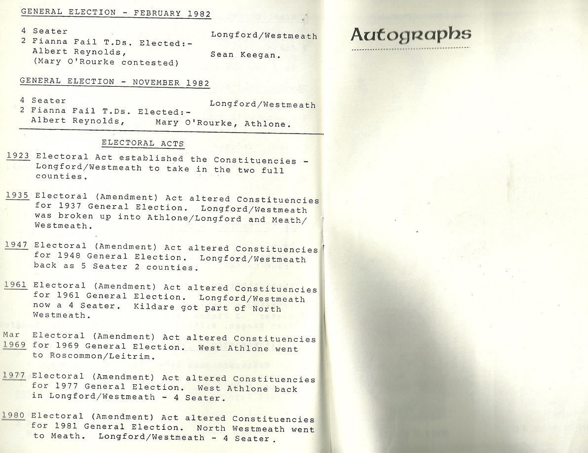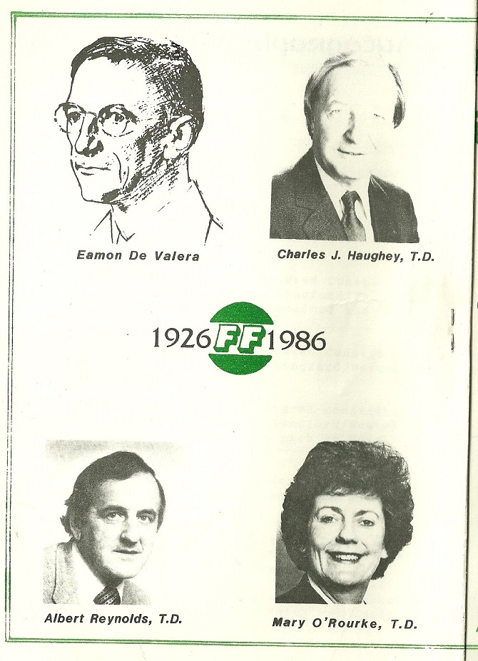 A small pamphlet produced for the Celebration Dinner Dance to mark “60 years of Fianna Fail Dail History” in Longford Westmeath held in Athlone on the 17th of October 1986.