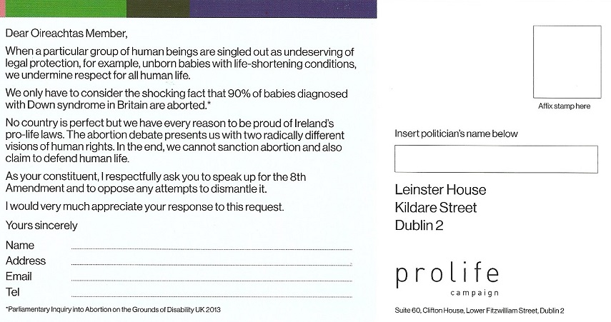 “Campaign Update and Appeal July 2016” Letter and Postcard from the Pro Life Campaign » JUly16plc4