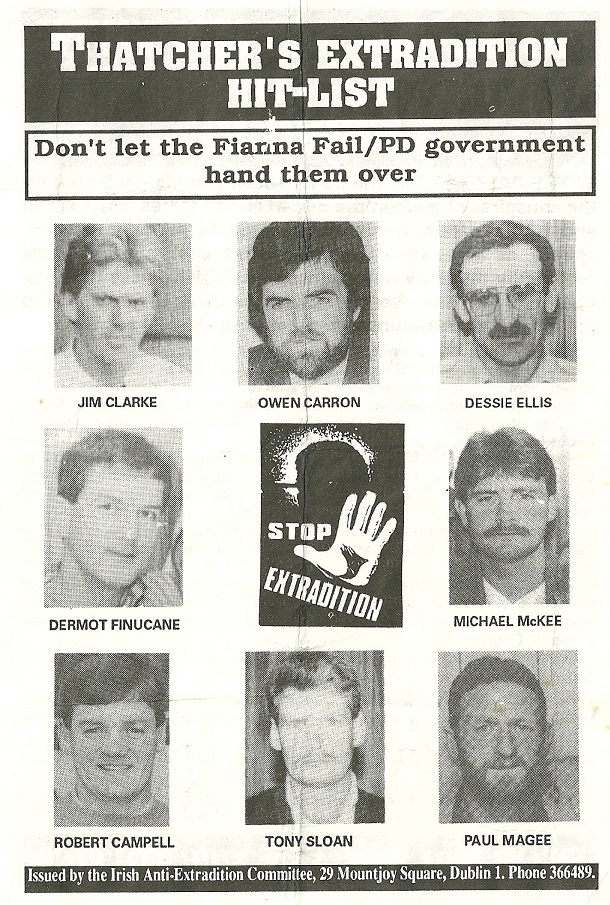 “Thatcher’s Extradition Hit-List” Irish Anti Extradition Committee leaflet 1989 » extradition1
