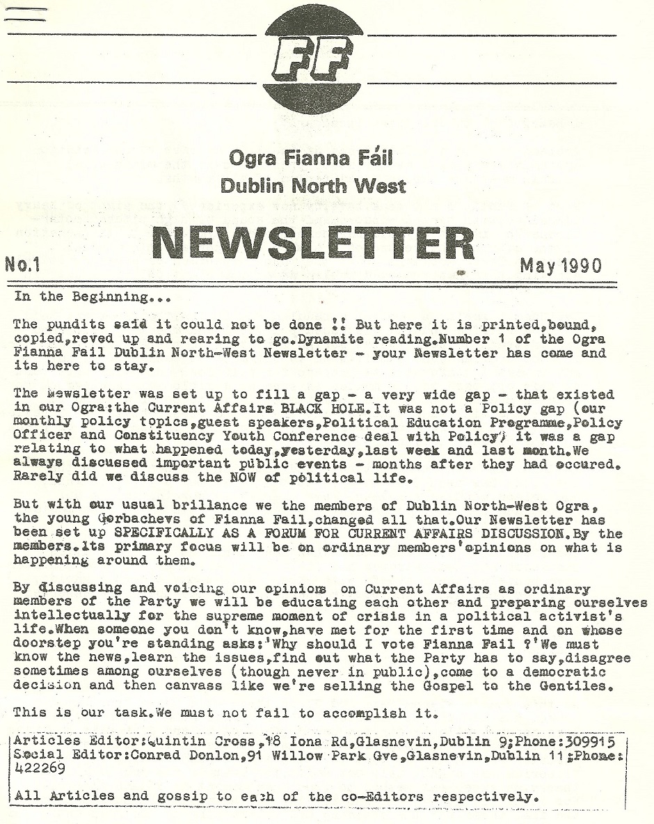 Ogra Fianna Fail Dublin North West -Newsletter -Issue 1 – May 1990 » dnwoff19901
