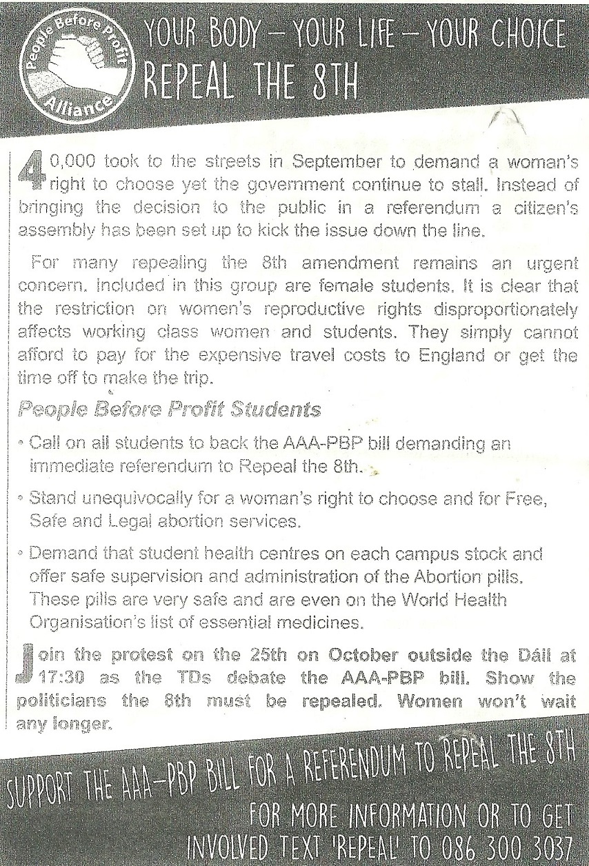 Education and #Repealthe8th leaflet from People Before Profit Students » students8thb