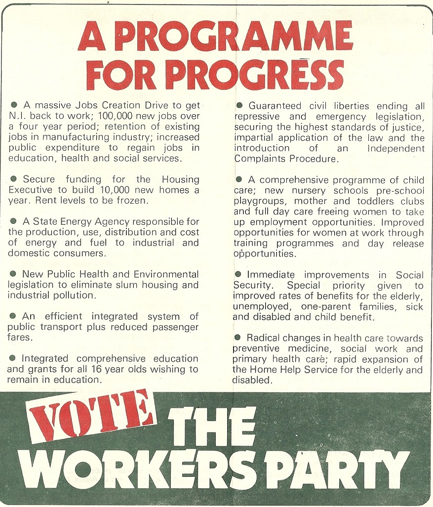 Leaflet from Gerard Carr -The Workers’ Party – 1982 Assembly Elections Belfast South » gcarr2