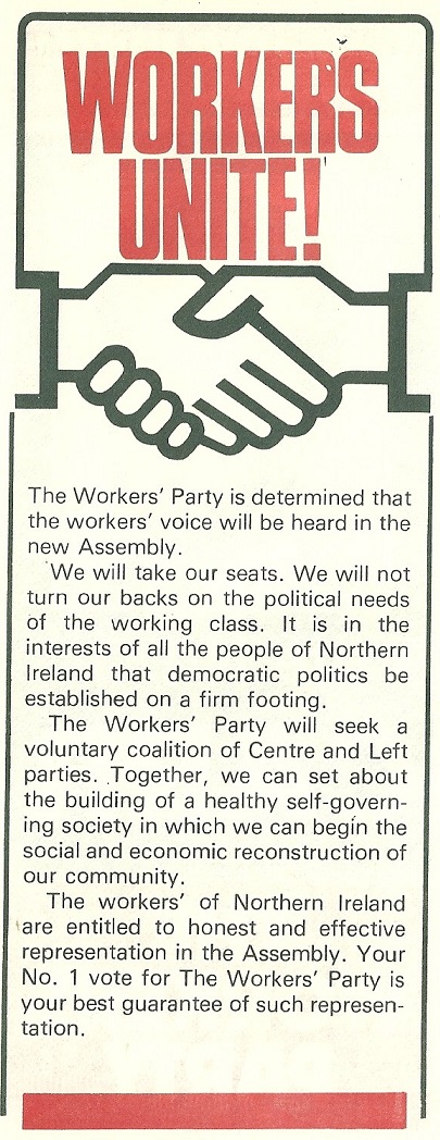 Leaflet from Gerard Carr -The Workers’ Party – 1982 Assembly Elections Belfast South » gcarr3