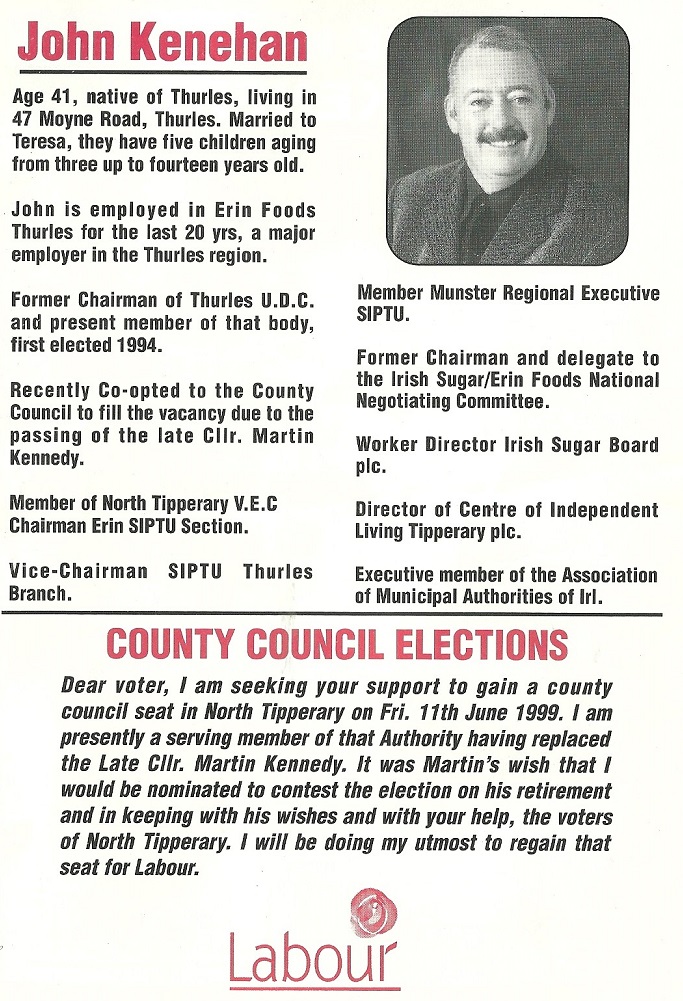 Leaflet from John Kenehan -Labour -Thurles -1999 Local Elections » jkeenan2
