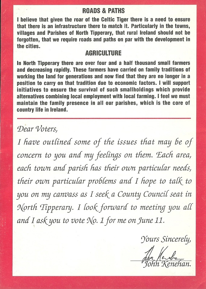 Leaflet from John Kenehan -Labour -Thurles -1999 Local Elections » jkeenan4