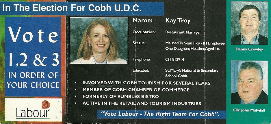 Leaflet for Kay Troy, Danny Crowley , John Mulvihill -Labour – Cobh -1999 Local Elections » jmulvihill1