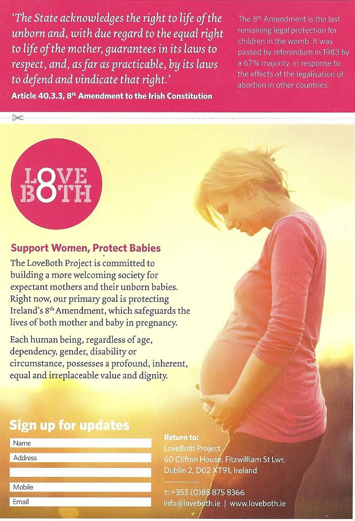 “Eight reasons to protect the 8th Amendment” leaflet from The Pro Life Campaign. » 8for8th8