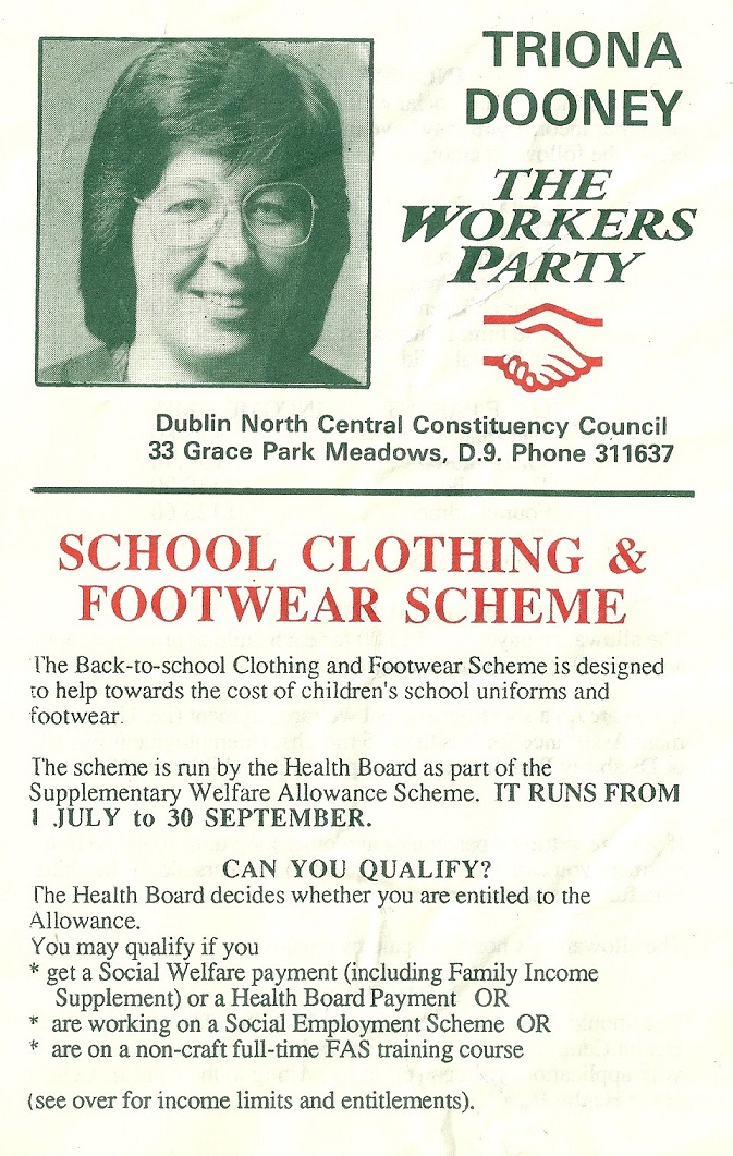 Leaflet from Triona Dooney -The Workers Party- Dublin North Central circa 1990 » tdooneyschool1