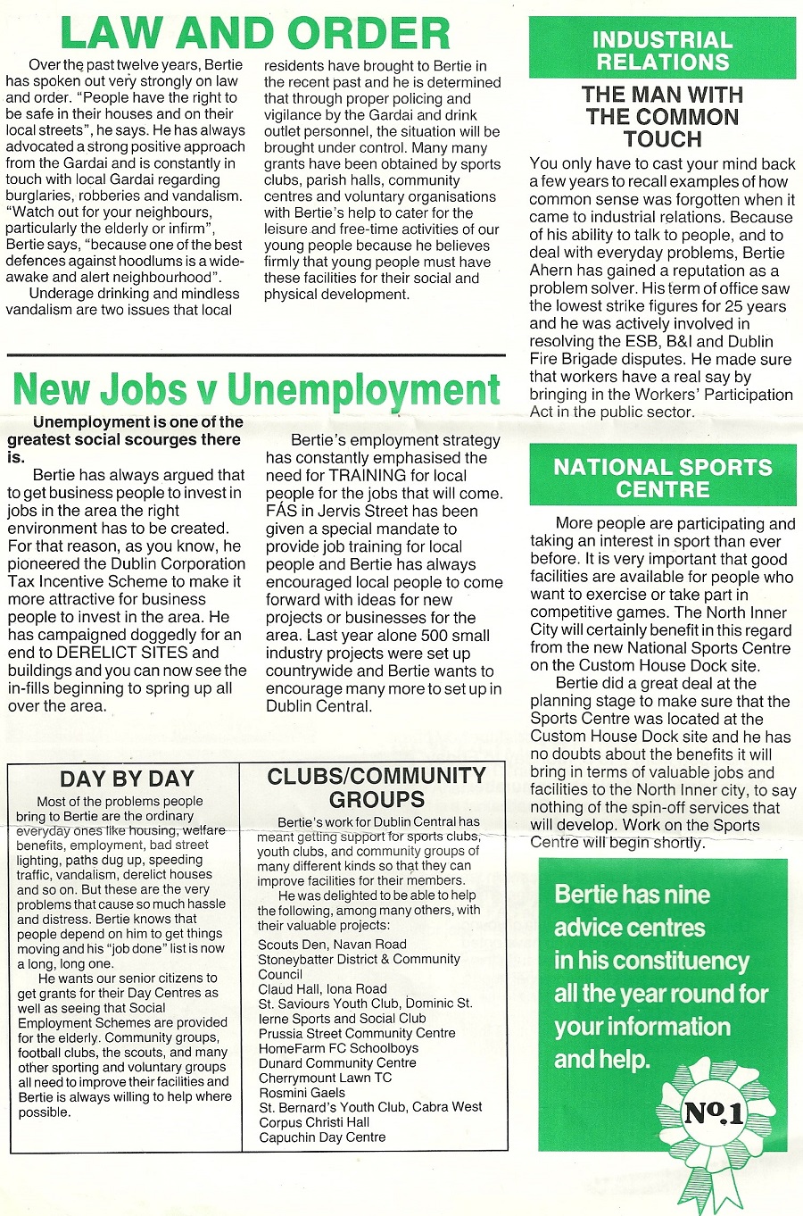 “Bertie The Local Man” 1989 Leaflet from Bertie Ahern -Fianna Fail -Dublin Central » bertielocal89d