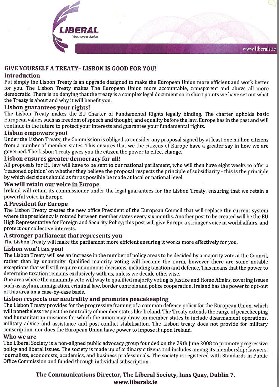 “Don’t Cast Ireland Adrift -Vote Yes to Lisbon” Leaflet from The Liberal Society » liberallisbon2