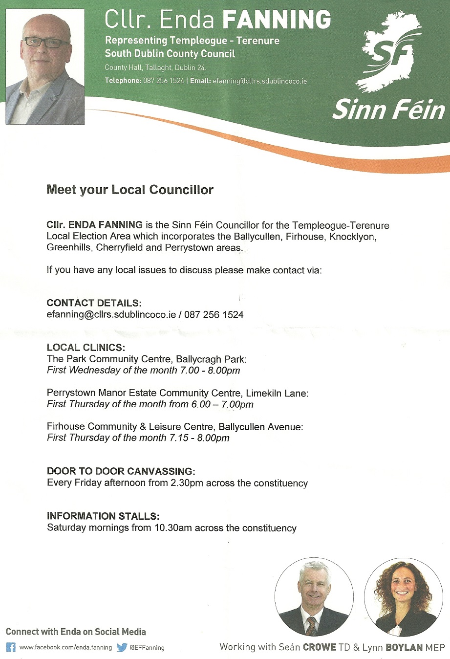 Leaflet from Cllr Enda Fanning with details of Clinics etc… » endafanningletter