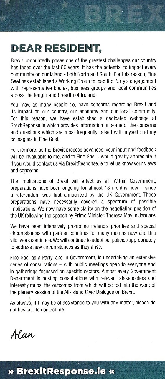 “Brexit: Our Response” leaflet from Alan Farrell -Fine Gael -Dublin Fingal » afarrellbrexit2
