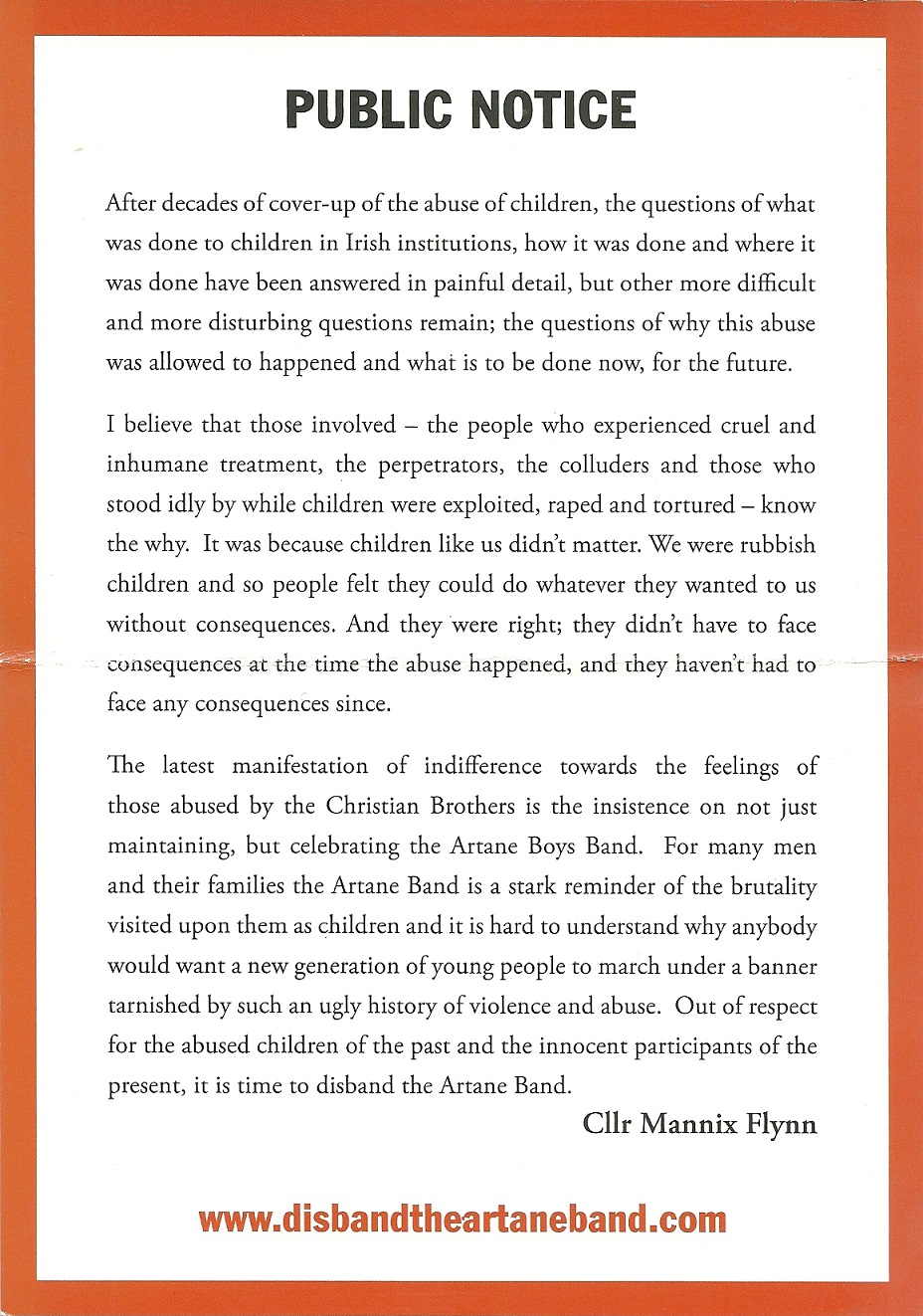 “Disband The Artane Band” leaflet from Mannix Flynn » disbandartane2