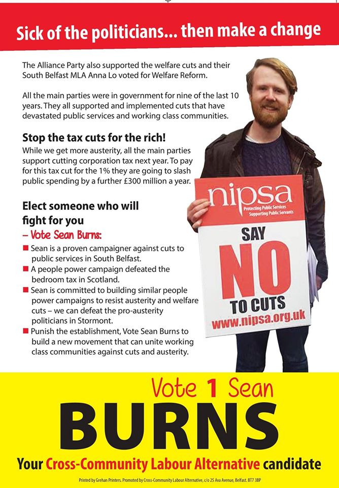Leaflet from Sean Burns- Cross Community Labour Alternative- Belfast South #AE17 » sburns2
