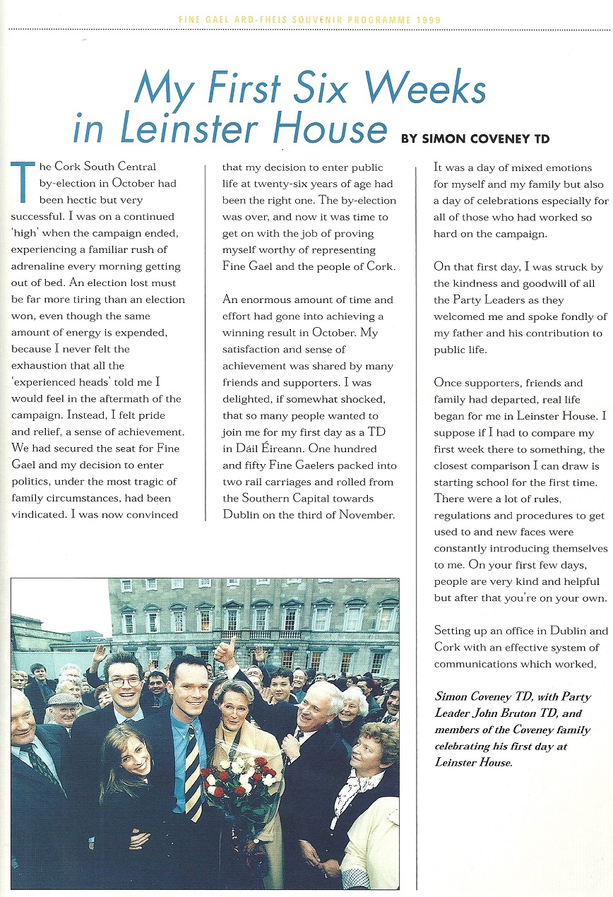 “My First Six Weeks in Leinster House” by Simon Coveney from the 1999 Fine Gael Ard Fheis » coveney6weeks1