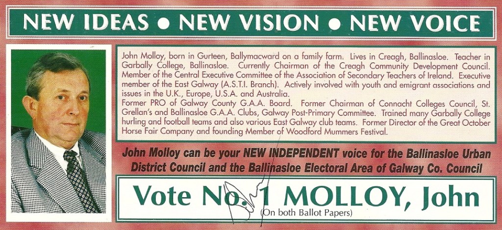 Leaflet from John Molloy -Independent -Ballinasloe -1999 Local Elections » johnmolloy1
