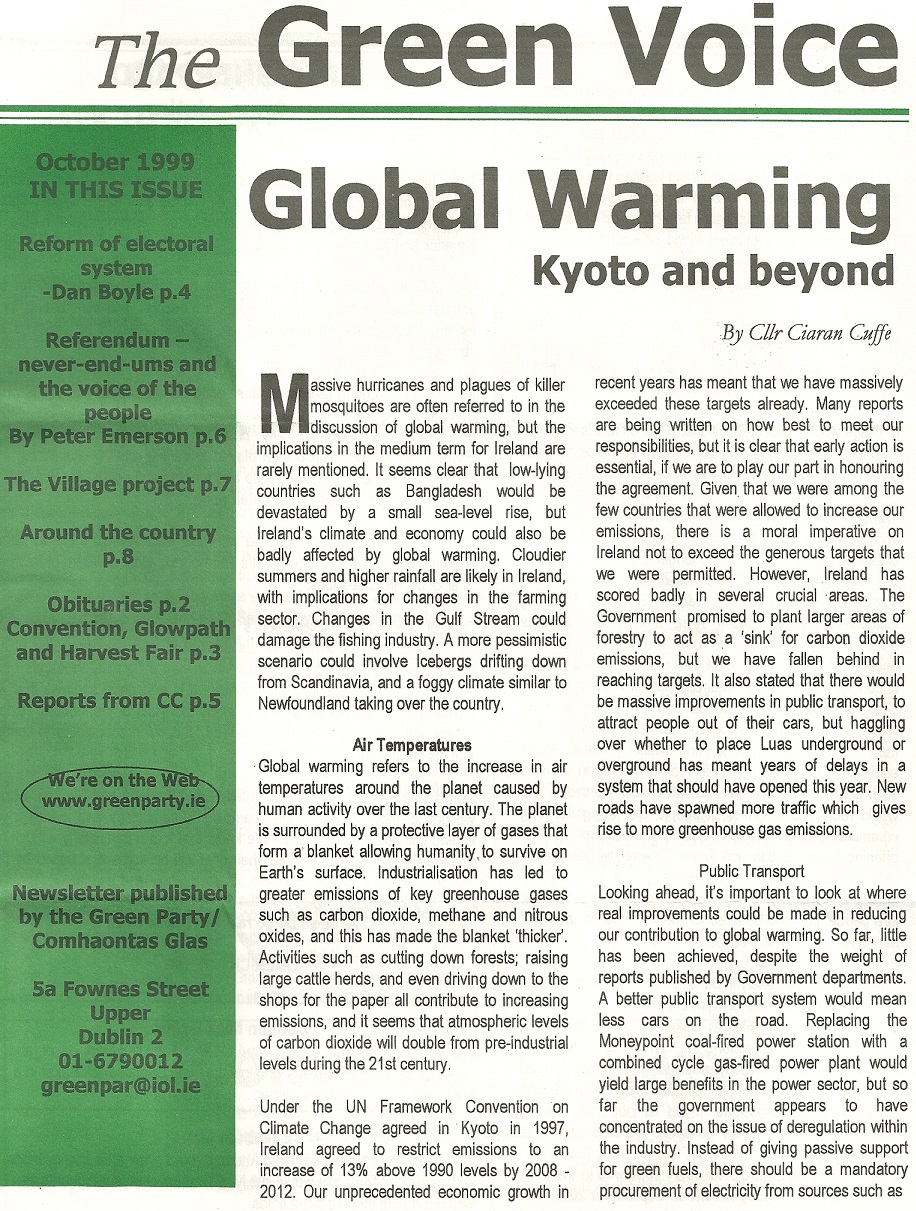 “Green Voice” October 1999 issue of the Green Party Newsletter » GreenVoice99Cover