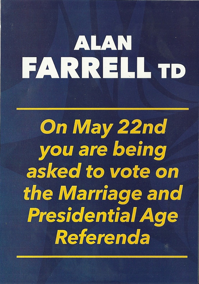2015 Alan Farrell leaflet with information on the Marriage Equality and Presidential Age Referendums » AFarrellRef1