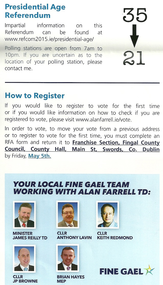 2015 Alan Farrell leaflet with information on the Marriage Equality and Presidential Age Referendums » AFarrellRef3