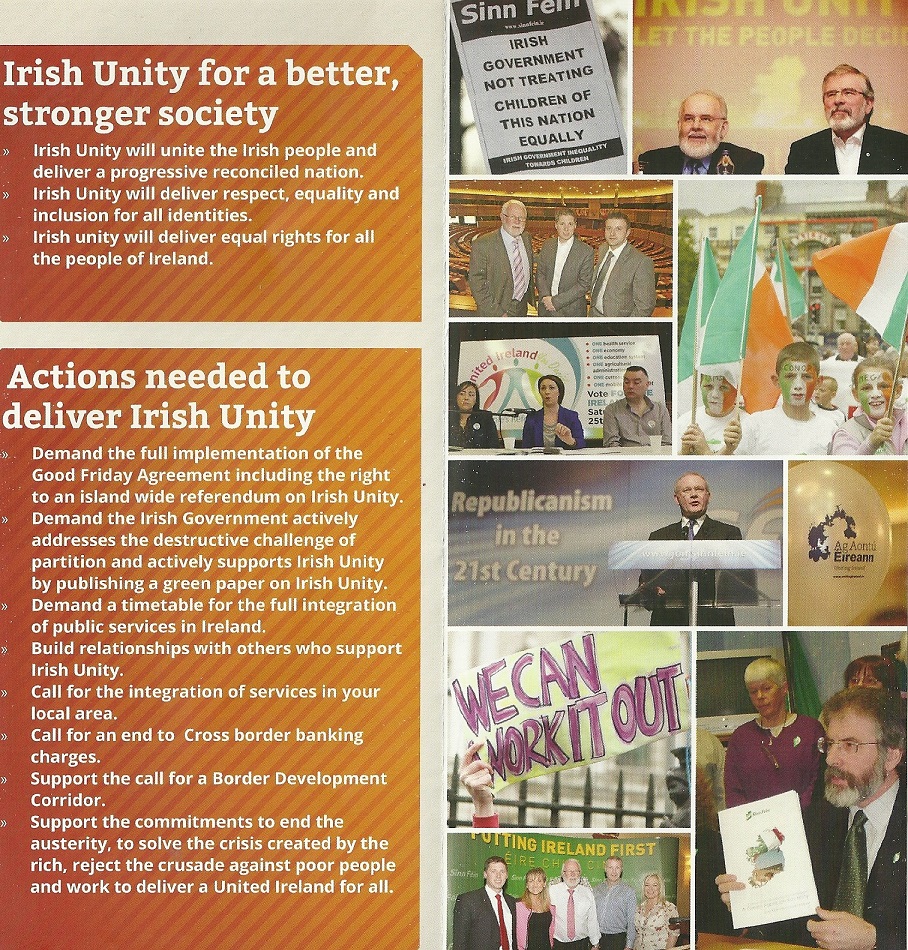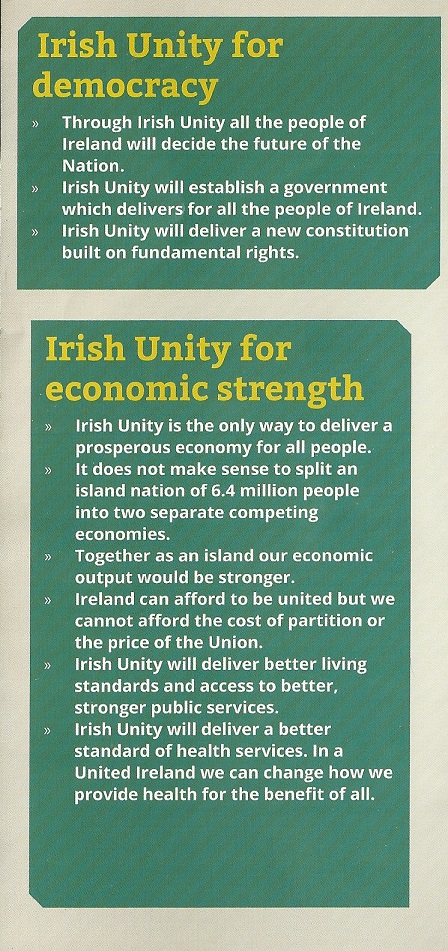 “Irish Unity- It’s in Your Hands” a Leaflet from Sinn Féin outlining the advantages of Unity and the Campaign for a United Ireland.