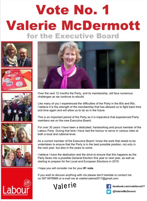 Leaflet from Valerie McDermott for the Labour Party Executive Board. » VMcDermott1