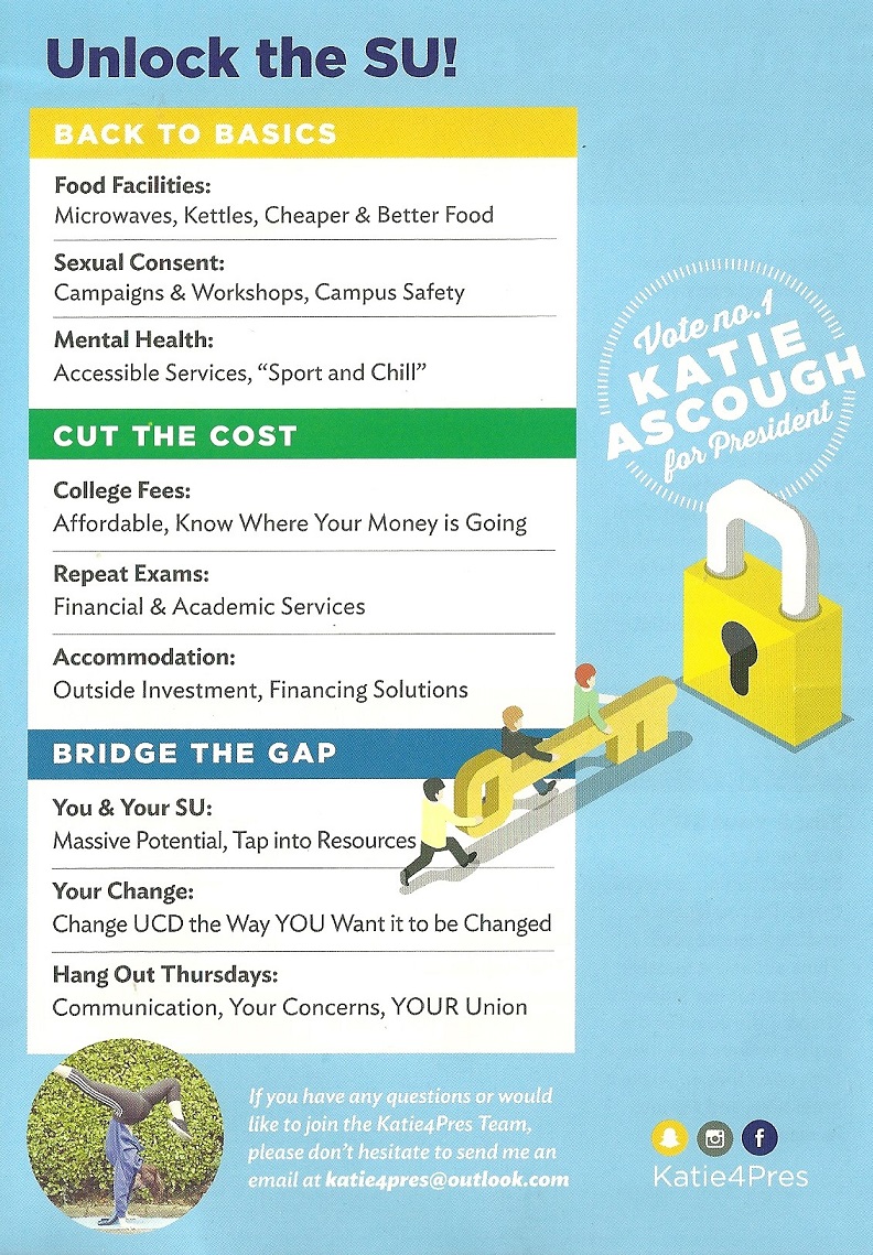 Leaflet (and profiles) of Katie Ascough – UCD Students Union Presidential Election » KAscough4