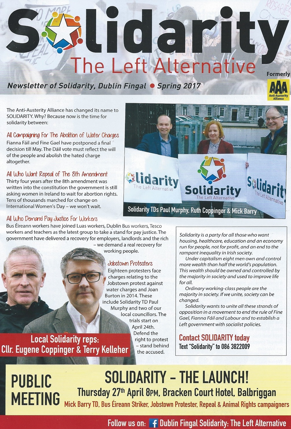 Spring 2017 Newsletter from Solidarity -Dublin Fingal » Solidarity Spring P1