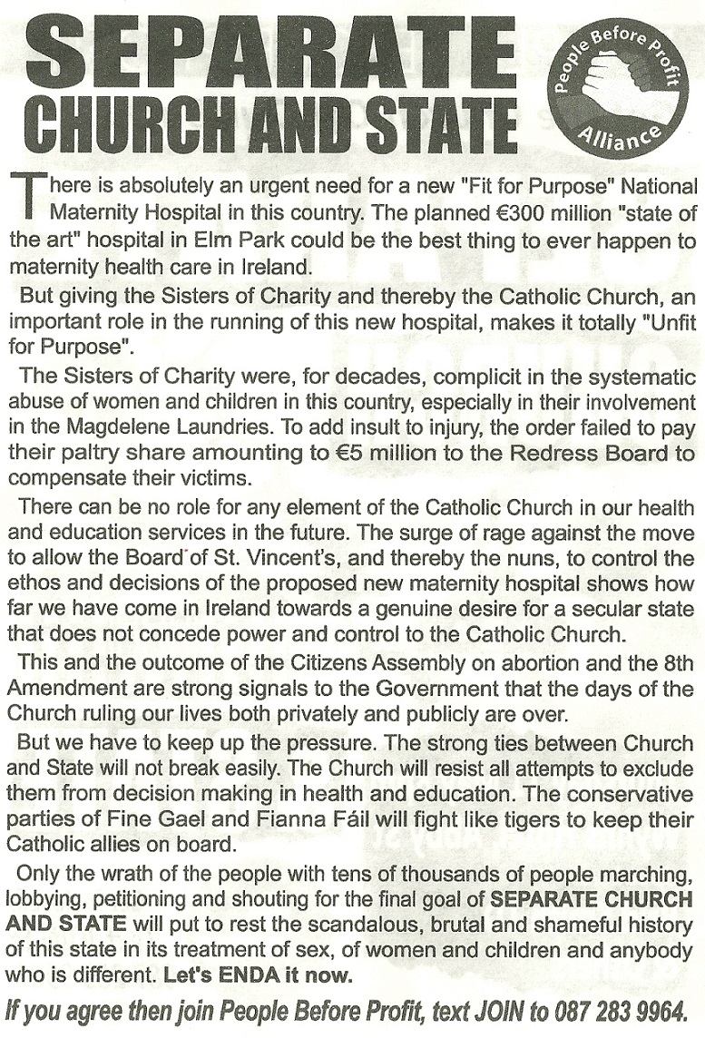“Separate Church & State” leaflet from People Before Profit » chruchandstate1pbp