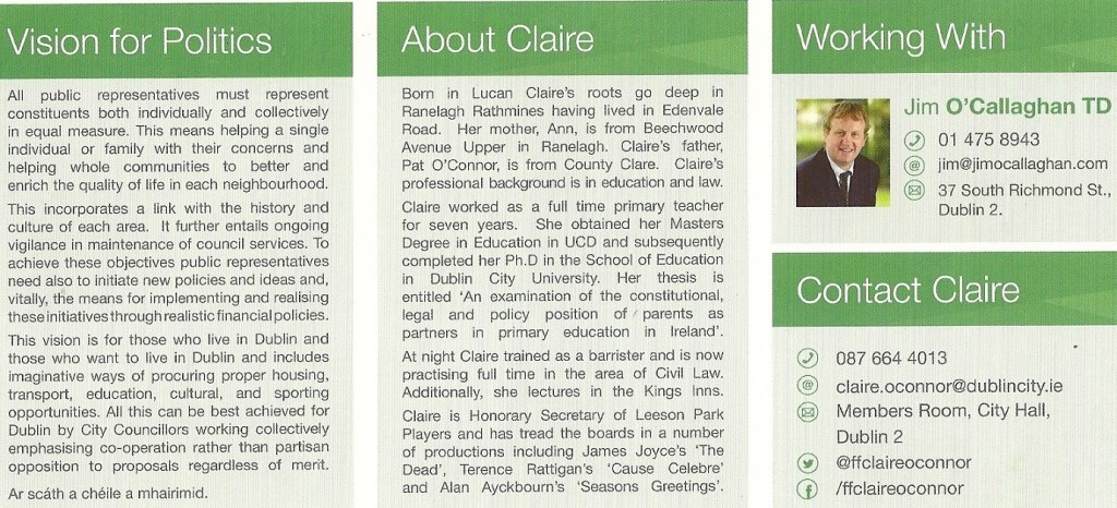 Leaflet from Cllr. Claire O’Connor – Fianna Fail -Dublin Bay South » claireoconnor2