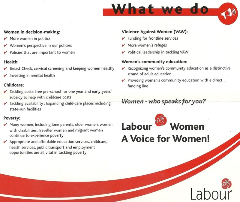 “Labour Women -A Voice for women” a leaflet from Labour Women explaining what they do. I think it’s from around 2010.