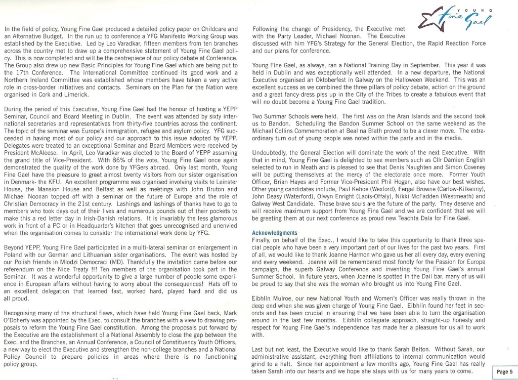 From Leo Varadkar in 2001 The Young Fine Gael National Executive Report » LeoNatExec2001b