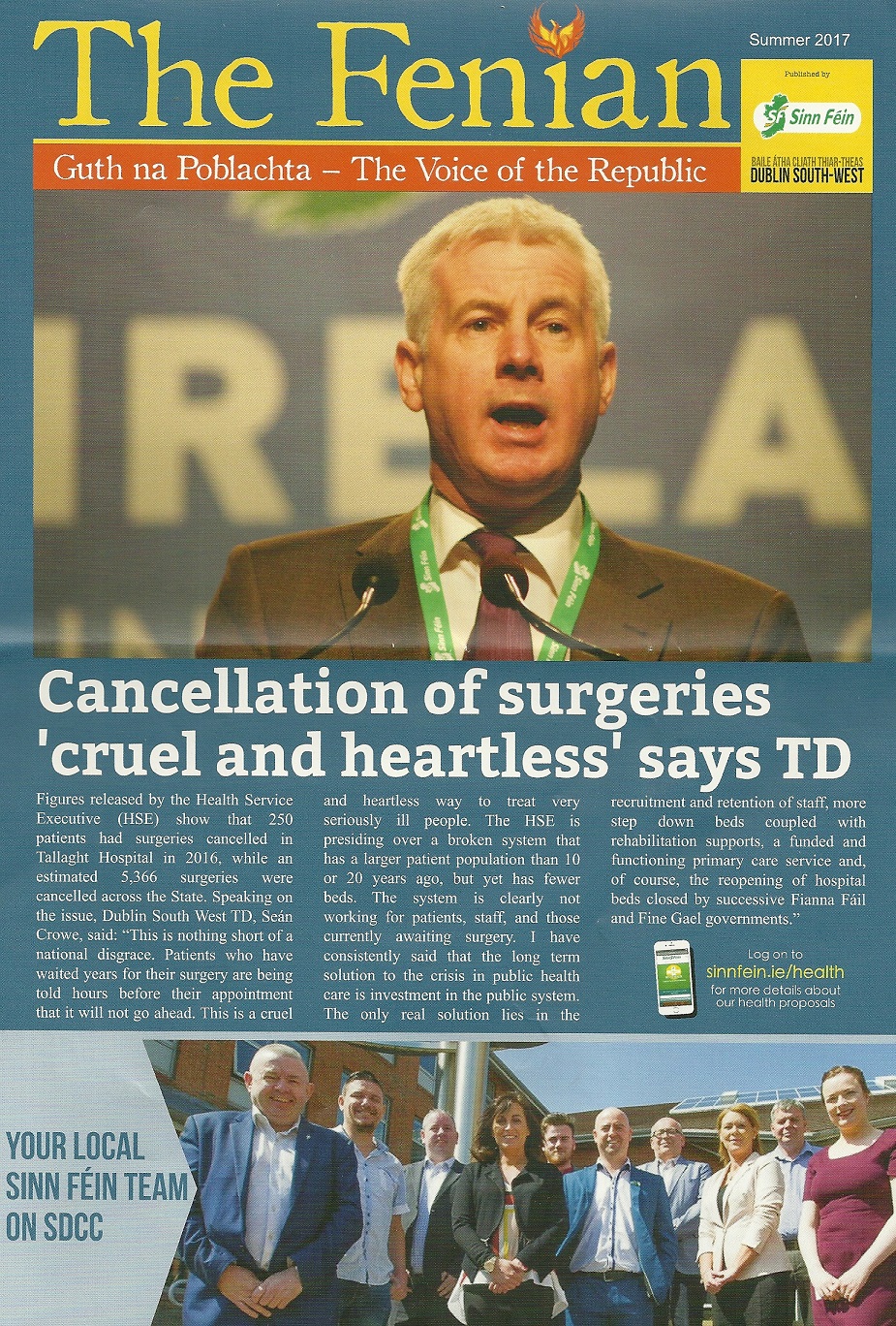 “The Fenian” Newsletter of Sinn Fein Dublin South West – Summer 2017 » FenianSum17a