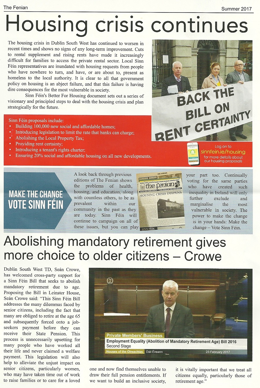 “The Fenian” Newsletter of Sinn Fein Dublin South West – Summer 2017 » FenianSum17f